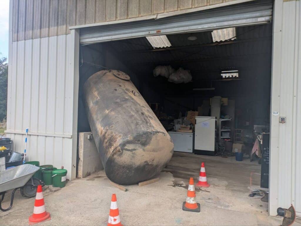 La cuve à fioul à été sortie du hangar (après quelques acrobaties et péripéties :P)